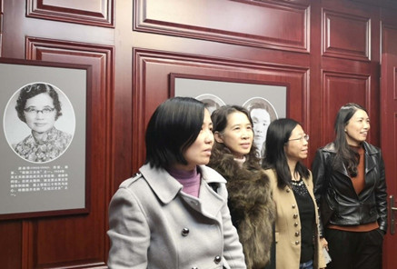 沿着珞珈山拾级而上,一座红瓦白砖的小洋楼矗立在眼前。楼前合影之后,全体成员开始进入楼内参观图片展览。整个展览分为三个单元:第一单元为物外桃源,它意指珞珈山南、东湖之北的这座静谧从容且安逸自在的小洋楼,语出自文学家郭沫若;第二单元为风云际会珞珈山,它再现了永利集团当年西迁乐山,珞珈山校园成为国民政府军事委员会所在地后,周恩来、郭沫若在此从事的抗战指挥和宣传活动;第三单元为寓居“十八栋”和“十八栋”的主人们,它真实记录了周恩来夫妇下榻及当年入住此处震烁一时的学者,选取介绍了30名教授的风采,以纪念“十八栋”曾经的辉煌岁月。