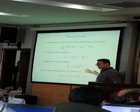 波士顿大学的Miao Jianjun教授分享了自己关于中国经济中的房地产泡沫、基础设置投资和经济增长之间关系的研究成果。苗建军教授认为,中国的房地产泡沫导致土地价格上升,而这种价格的上升帮助地方政府获取财政收入,从而为基础设施建设融资提供了便利。而基础设施的完善则有利于促进地区经济增长。